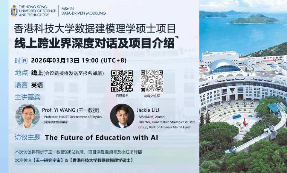 活动预告 | 学术顶流×跨界精英:探秘AI+数据如何重塑世界 ——香港科技大学数据建模理学硕士项目线上跨业界深度对话 (暨DDM项目介绍)